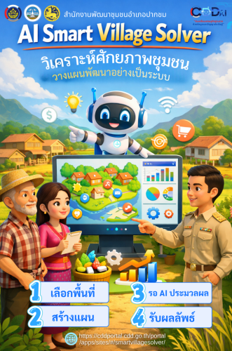 สพอ.ปากชม ขอประชาสัมพันธ์ และเชิญชวนใช้ 1 ในฟังก์ชัน AI ผู้ช่วยอัจฉริยะเพื่อการพัฒนาชุมชน เปลี่ยนข้อมูลให้กลายเป็น "แผนแม่บทพัฒนาชุมชนอัจฉริยะ" อย่างเป็นระบบ ครบถ้วนใน 4 ขั้นตอน: