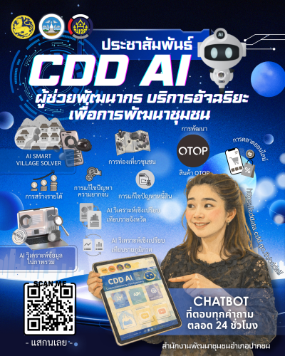 āļāļĢāļĄāļāļēāļĢāļāļąāļāļāļēāļāļļāļĄāļāļ āļāļĢāļ°āļāļĢāļ§āļāļĄāļŦāļēāļāđāļāļĒ āđāļāļīāļāļāļąāļ§ “CDD AI Chatbot” āļāļđāđāļāđāļ§āļĒāļāļąāļāļāļĢāļīāļĒāļ°āļāđāļēāļāļāļēāļĢāļāļąāļāļāļēāļāļļāļĄāļāļ āļāļĩāđāļāļĢāđāļāļĄāđāļŦāđāļāļģāļāļāļāļāļĒāđāļēāļāļĢāļ§āļāđāļĢāđāļ§ āđāļāđāļēāđāļāļāđāļēāļĒ āđāļĨāļ°āđāļāđāļēāļāļķāļāļāđāļāļĄāļđāļĨāļāļāļāļāļĢāļĄāļŊ āđāļāđāļāļĨāļāļ 24 āļāļąāđāļ§āđāļĄāļ āļāđāļ§āļĒāđāļāļāđāļāđāļĨāļĒāļĩāļāļąāļāļāļēāļāļĢāļ°āļāļīāļĐāļāđ (Artificial Intelligence – AI) āļāļąāļāļāļēāđāļāļĒāļāļĢāļĄāļāļēāļĢāļāļąāļāļāļēāļāļļāļĄāļāļ “ CDD AI Chatbot” āļŠāļēāļĄāļēāļĢāļāļāļāļāļāļģāļāļēāļĄāđāļĨāļ°āđāļŦāđāļāļģāđāļāļ°āļāļģāđāļāđāđāļāļŦāļĨāļēāļĒāļāđāļēāļ āļāļēāļāļī āđāļāđāļ